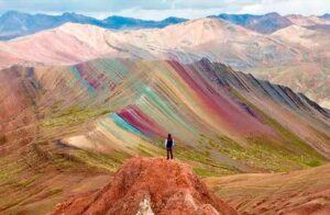 4. Caminata a la Cima de la Montaña: Al llegar a la cordillera de Palcoyo, el guía nos dará las instrucciones necesarias antes de iniciar una caminata de aproximadamente 50 minutos hasta llegar a la cima. Durante el recorrido, apreciará los majestuosos glaciares de la zona y los colores intensos de las montañas, similares a los de la famosa Montaña de Vinincunca, pero mucho menos concurridas.Esta montaña se destaca por sus impresionantes capas multicolores que forman un paisaje único debido a un proceso geológico que alineó los diferentes estratos de la tierra en tonos como verde, ocre, azul, blanco y amarillo.